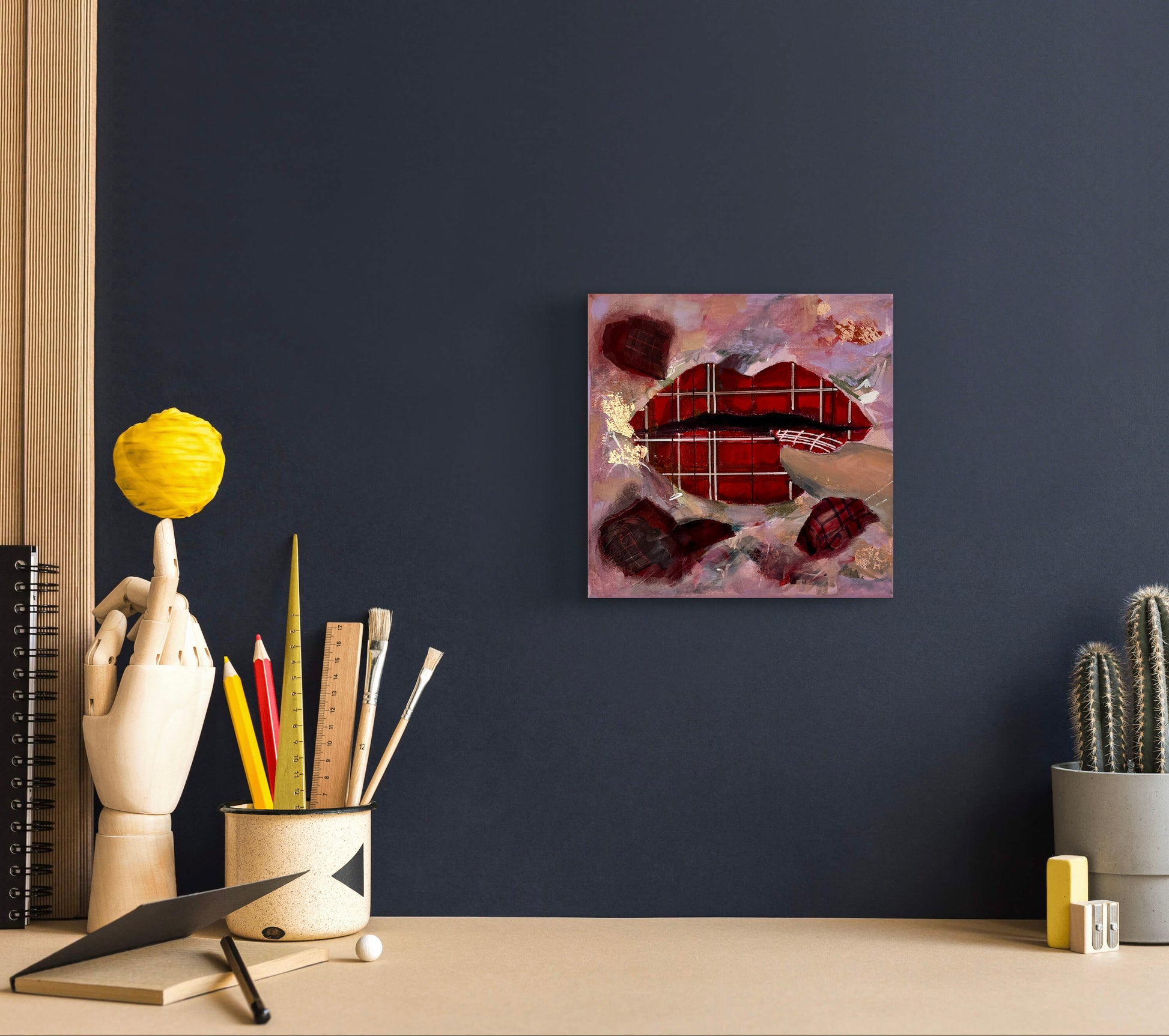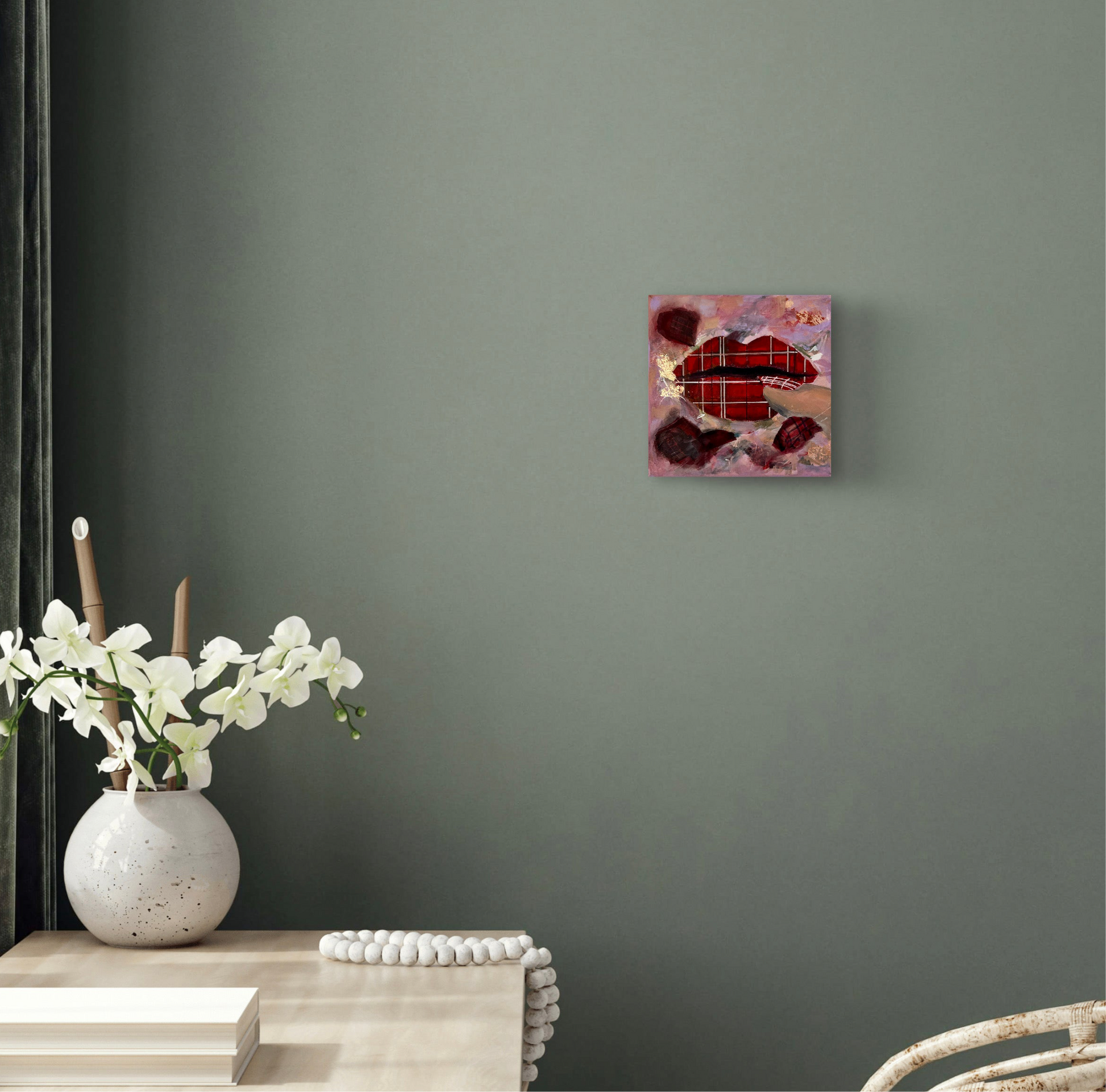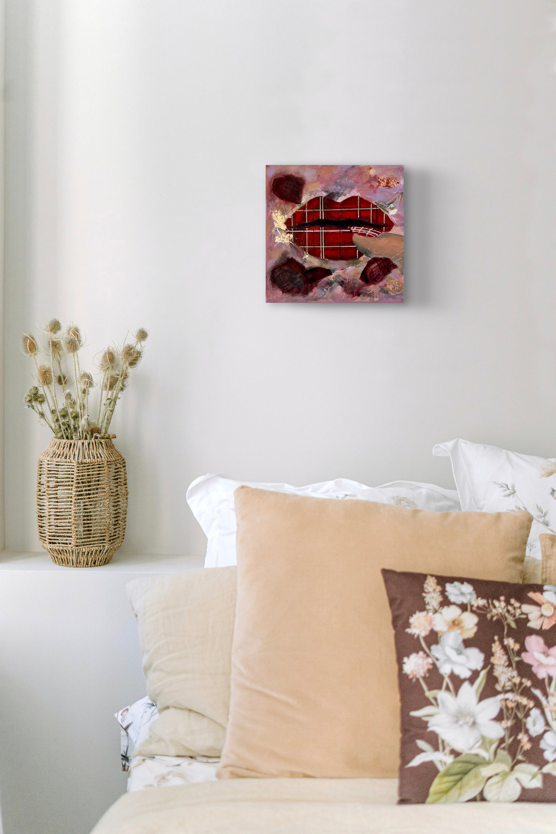20 x 20 cm (7.8" x 7.8") on galley wrapped canvas.
